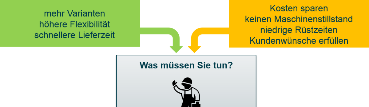 Mittels einer intelligenten Organisation, Teamarbeit und standardisierter Abläufe wird die Rüstzeitoptimierung durch SMED erfolgreich im Unternehmen implementiert, da sie Stillstände entscheidend reduziert und so die Reaktionsmöglichkeit auf Kundenanfragen erhöht.